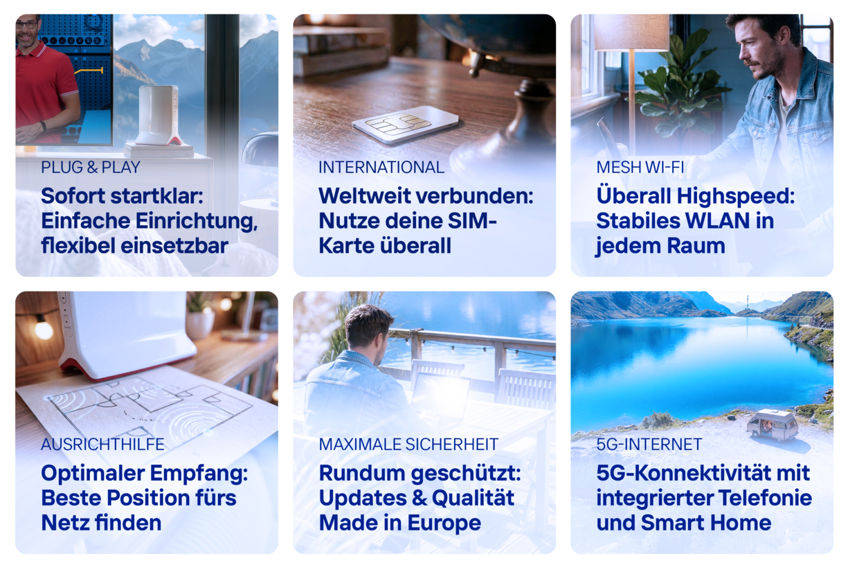 Mit den Mobilfunk-Routern von FRITZ! bietest du deinen Kunden zuverlässige Internetlösungen für verschiedenste Einsatzbereiche. Die FRITZ!Box-Modelle mit 5G oder 4G machen Konnektivität flexibel und einfach.