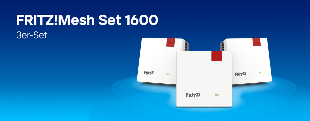 Das FRITZ!Mesh Set 1600 eröffnet neue Möglichkeiten für dein Heimnetz: Verbinde es mit deinem Router oder bestehendem Modem und profitiere von stabilem und schnellem WLAN – mit allen von FRITZ! bekannten Funktionen wie Gastzugang, Zeitschaltung, Kindersicherung sowie automatischen Updates.