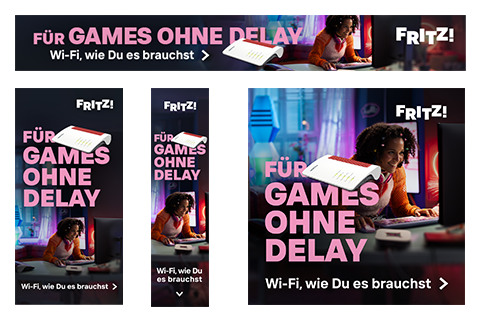 Im Marketingbereich unter Downloads findest du passende Banner in verschiedenen Grössen für deine Website. So lenkst du die Aufmerksamkeit deiner Kunden auf die FRITZ!Repeater und kurbelst deinen Umsatz an.