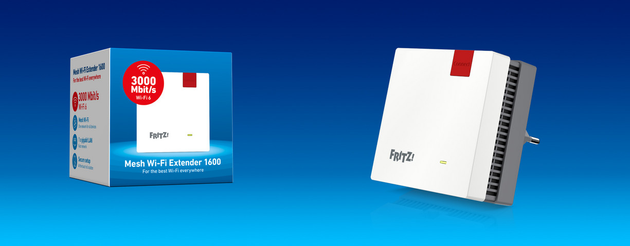 Der neue Mesh Wi-Fi Extender 1600 (FRITZ!Repeater 1200 AX Edition International) erhöht schnell und einfach die Reichweite jedes WLANs. Innovatives Wi-Fi 6 sorgt für höhere Datenraten und eine bessere Verteilung der verfügbaren Bandbreite an alle verbundenen Endgeräte. Gleichzeitig sorgt der Mesh Wi-Fi Extender 1600 für eine perfekte Funkabdeckung bis in den letzten Winkel von Haus und Wohnung.