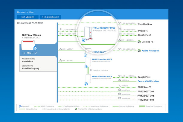 FRITZ! erweitert die Mesh-WLAN-Technologie, die eine lückenlose WLAN-Abdeckung im gesamten Heimnetzwerk garantiert. Die FRITZ!Box und weitere Mesh-fähige FRITZ!-Produkte arbeiten nun noch synergetischer zusammen. Das konstant weiterentwickelte FRITZ!OS ermöglicht die bequeme Geräteverwaltung. So entsteht ein einheitliches und starkes Netzwerk, das sich dynamisch an die vielfältigen Bedürfnisse der Nutzer anpasst. In Zeiten einer wachsenden Verbreitung von intelligenten Waschmaschinen, Kühlschränken und Saugrobotern ein wichtiger Schritt.