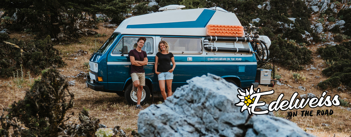 Regina und Thomas vom Instagram-Kanal "Edelweiss On The Road" stellen sich kurz vor und erklären, wie das Internet in den Van kommt.