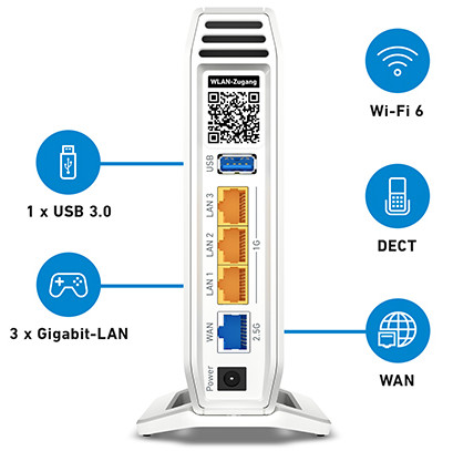 - WLAN-Router für den Anschluss an Glasfaser-/Kabel-/DSL-Modem oder Mobilfunkstick