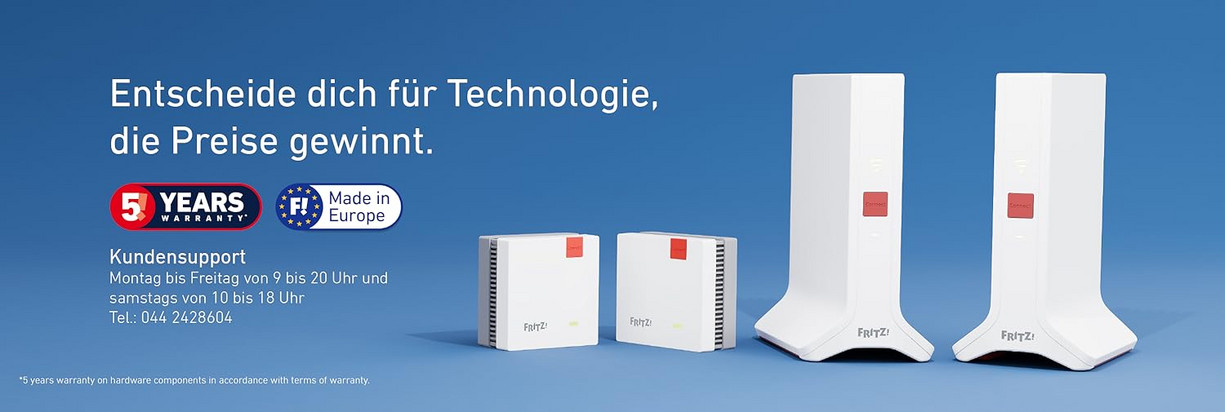 Steigere deinen Verkauf der neuen FRITZ!Mesh Wi-Fi Sets mit unseren brandneuen Online-Bannern. Lade sie ganz einfach unter Marketing > Downloads herunter und platziere sie direkt auf deiner Website.