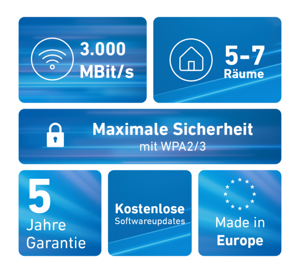 - WLAN bis 3.000 MBit/s mit Wi-Fi 6