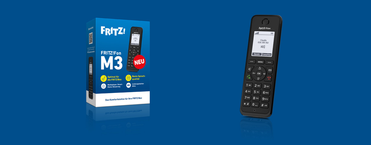 Das neue, vielseitige DECT-Telefon FRITZ!Fon M3 mit HD-Telefonie und einem natürlichen Klangbild sorgt mit Full-Duplex-Freisprechen für beste Verständigung. Das übersichtliche 1,8-Zoll-Monochrom-Display und die beleuchtete Tastatur bieten höchsten Bedienkomfort. Mit einer langen Akkulaufzeit, smarten Multimedia- und Steuerungsfunktionen sowie der exzellenten Sprachqualität ist das FRITZ!Fon M3 die perfekte Ergänzung zur FRITZ!Box – egal ob im Büro, im Homeoffice oder zu Hause.