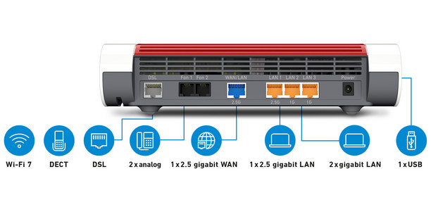 Mit der FRITZ!Box 7682 bist du bestens für die Zukunft gerüstet: Das neue DSL-Modell unterstützt G.fast für Verbindungen mit bis zu 1 GBit/s und Supervectoring 35b für bis zu 300 MBit/s. So gelangt das hohe Glasfasertempo über die vorhandenen Kupferleitungen bis in die Wohnung. Über den 2,5-Gigabit-WAN/LAN-Anschluss surfst du auch am Glasfasermodem mit Höchstgeschwindigkeit.