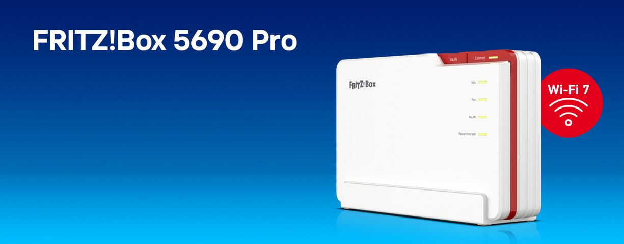 El FRITZ!Box 5690 Pro ofrece Wi-Fi 7 con velocidad Multi-Gigabit en la conexión de fibra óptica. La banda de 6 GHz proporciona un ancho de canal de hasta 320 MHz, lo que permite un rendimiento de datos muy alto en la red Wi-Fi, esto combinado con baja latencia permite una comunicación inalámbrica rápida incluso para futuras aplicaciones en tiempo real. Las aplicaciones actuales se benefician de conexiones más rápidas, incluso a larga distancia y para muchos dispositivos móviles conectados simultáneamente. Las conexiones ahora son aún más robustas con los mecanismos integrados en la Wi-Fi 7, ya que las áreas con interferencias potenciales pueden ser detectadas y excluidas de la comunicación. Esto proporciona condiciones aún más estables para la comunicación inalámbrica.