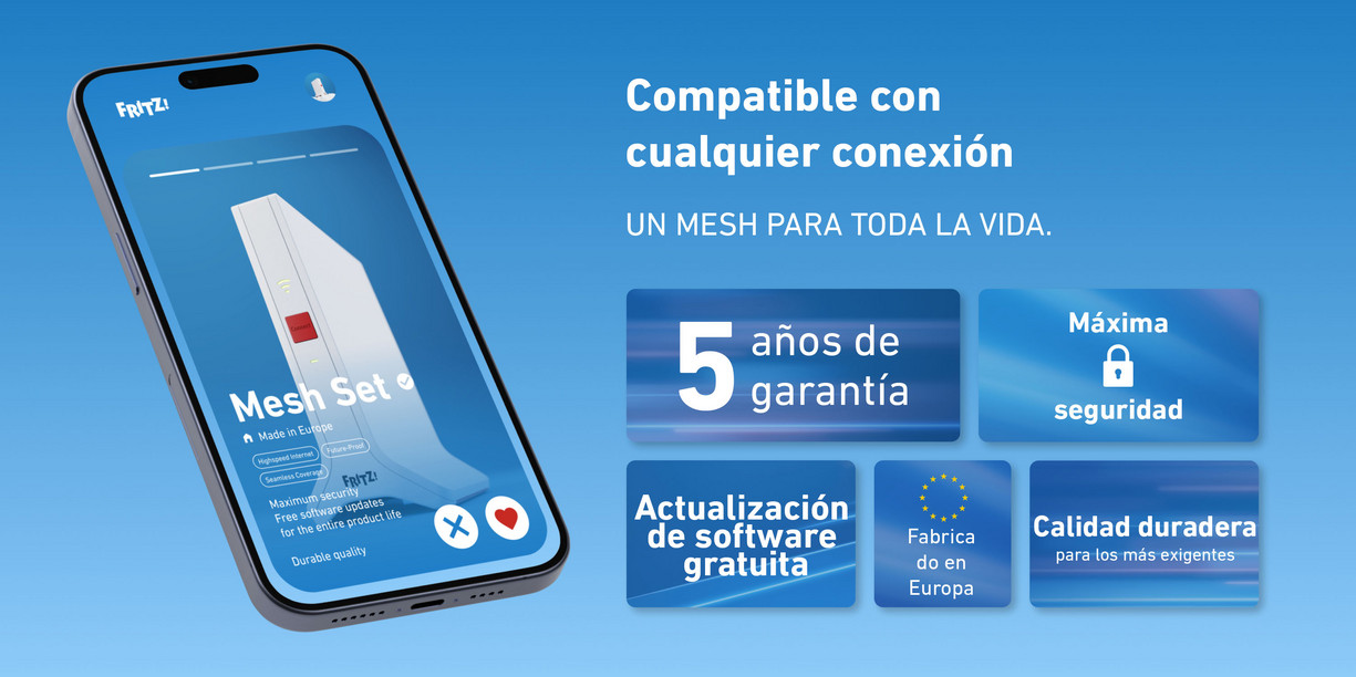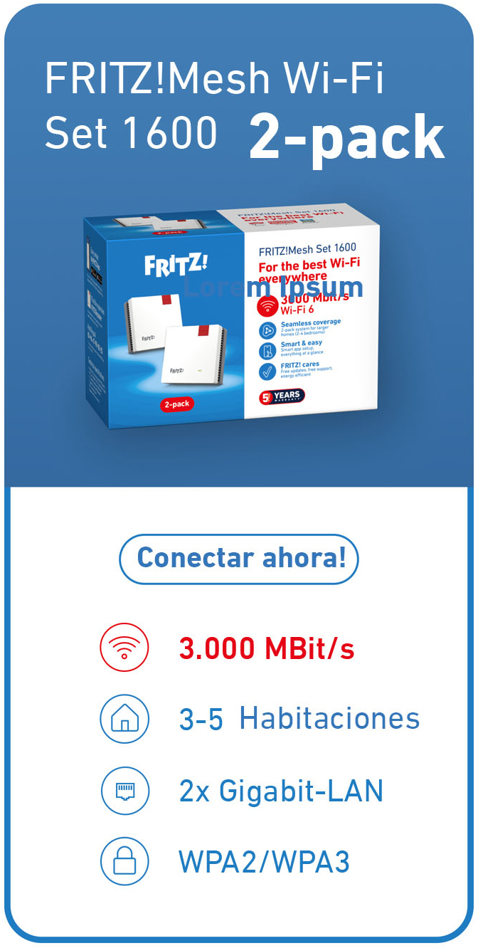 Impulsa las ventas de los nuevos FRITZ!Mesh Wi-Fi Sets con nuestros banners online recién estrenados. Descárgalos fácilmente en el apartado Marketing > Descargas y súbelos directamente a tu web.