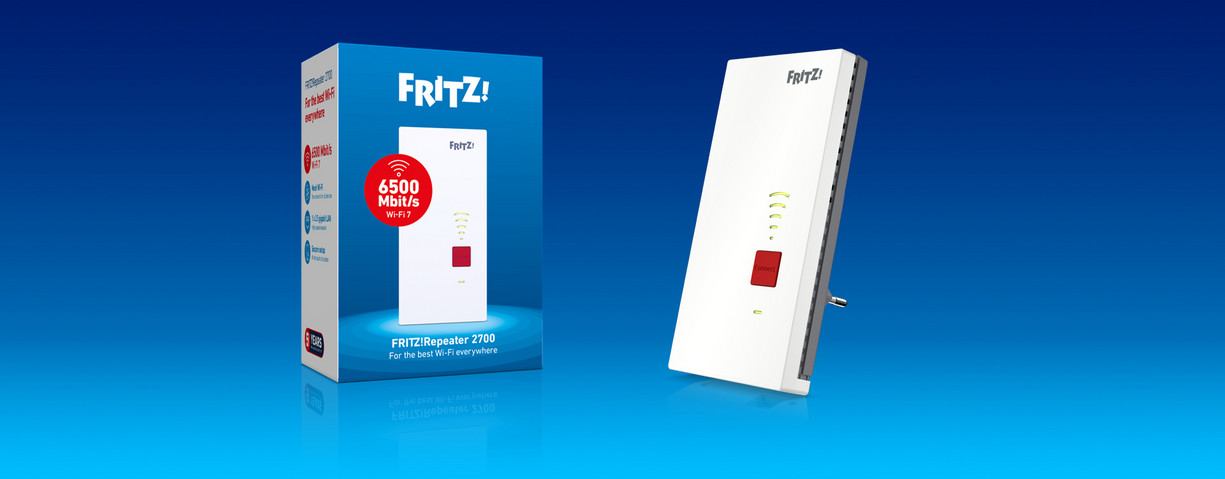 Il Mesh Wi-Fi Extender 2700 porta l'alta velocità in tutta casa: grazie allo standard Wi-Fi 7, a quattro antenne nella banda a 5 GHz e due antenne in quella a 2,4 GHz (4x4 + 2x2), raggiunge velocità di trasferimento wireless fino a 6.500 Mbit/s. La porta LAN a 2,5 gigabit assicura connessioni veloci con il FRITZ!Box o con dispositivi come NAS, streaming box o console. Il dispositivo offre prestazioni eccellenti in tutta la rete locale anche in caso di più applicazioni in parallelo come streaming, gaming o videoconferenze.