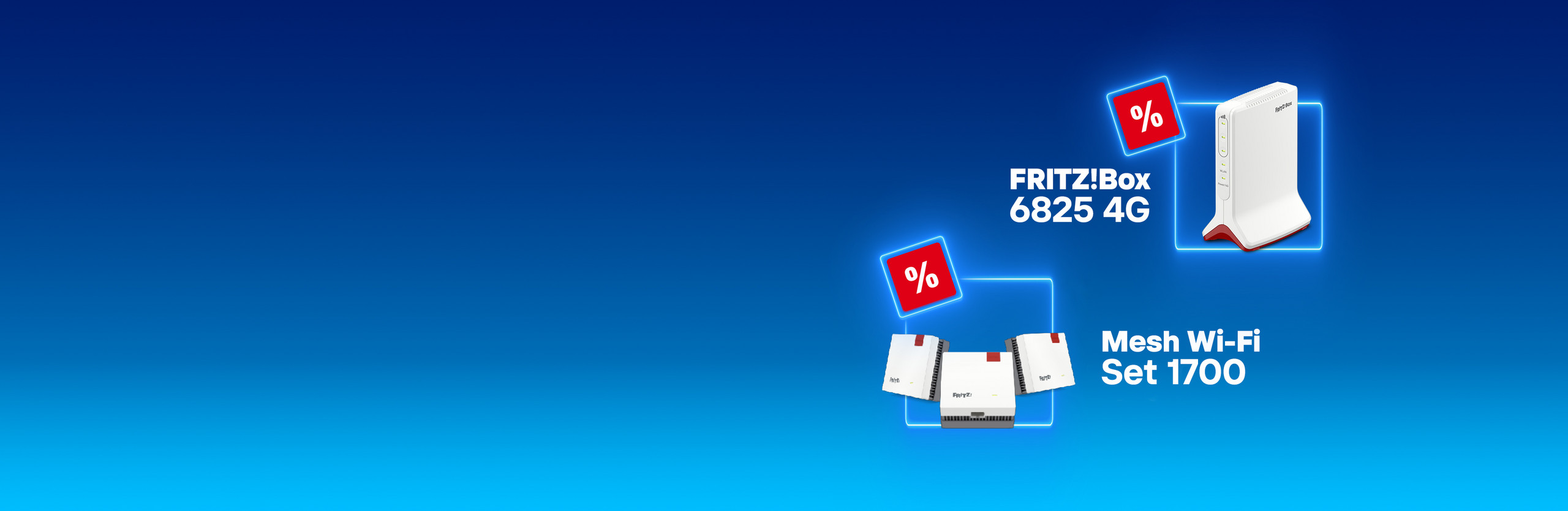 Le offerte sono valide fino al 30 aprile ad esaurimento scorte – Fai crescere il tuo business e approfitta ora delle promozioni attive su FRITZ!Box 6825 4G e FRITZ!Mesh Set 1700 3-pack: ordinali subito sul Business Portal