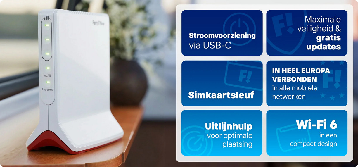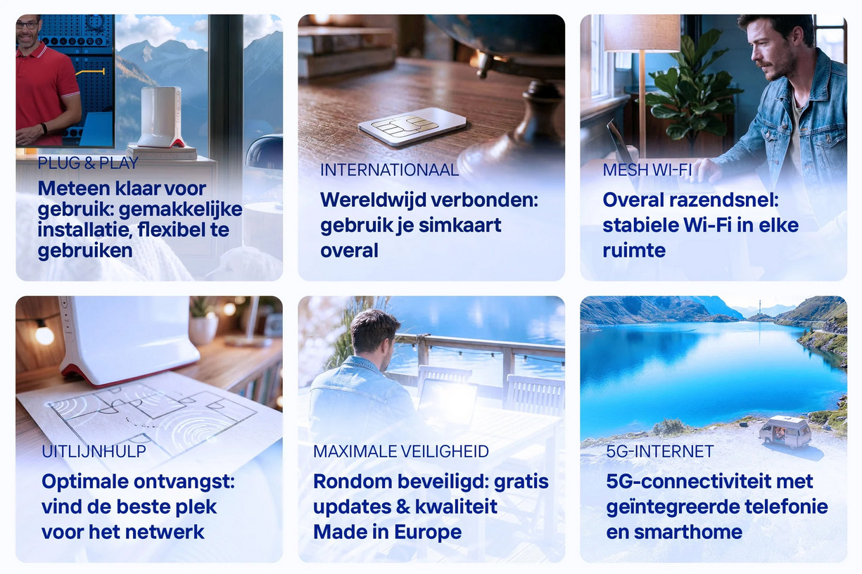 Met de mobiele modems van FRITZ! bied jij jouw klanten betrouwbare internetoplossingen voor verschillende scenario’s. De FRITZ!Box-modellen met 5G of 4G maken connectiviteit flexibel en eenvoudig.