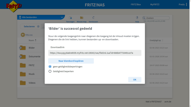 Met het nieuwe FRITZ!OS 8.20 is het nóg gemakkelijker bestanden via FRITZ!NAS te delen. Dankzij de nieuwe functie voor gedeelde upload verzamel je moeiteloos foto’s, video’s en documenten. Je hoeft alleen maar een toegangslink aan te maken en je familie, vrienden en collega’s kunnen meteen hun bestanden uploaden. Zo simpel is het om bestanden delen!