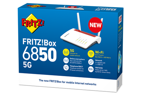 De FRITZ!Box 6850 5G zorgt in het thuis- of kantoornetwerk voor highspeedinternet volgens de nieuwste standaard voor het mobiele netwerk, 5G.