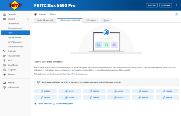 Met zogenaamde Tickets voor onlinetijd kun je apparaten met beperkte internettoegang tijdelijk extra onlinetijd toewijzen – bijvoorbeeld om spontaan iets op te zoeken, als een training is uitgelopen of voor uitzonderingen tijdens het werk. Met een onlineticket krijgt een apparaat 45 minuten extra toegang tot het internet.